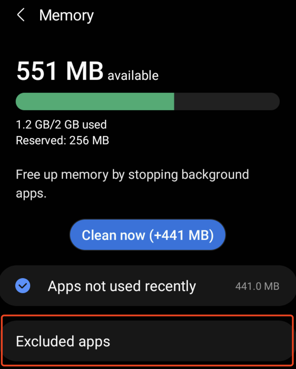 5. Find and tap on Excluded Apps (this may sometimes be labeled as Apps not to be optimized or similar).