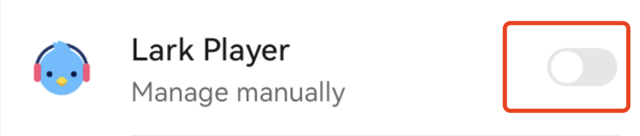 3. Find Lark Player in the list. Turn on the switch for Manage manually.