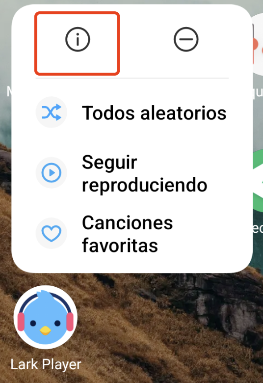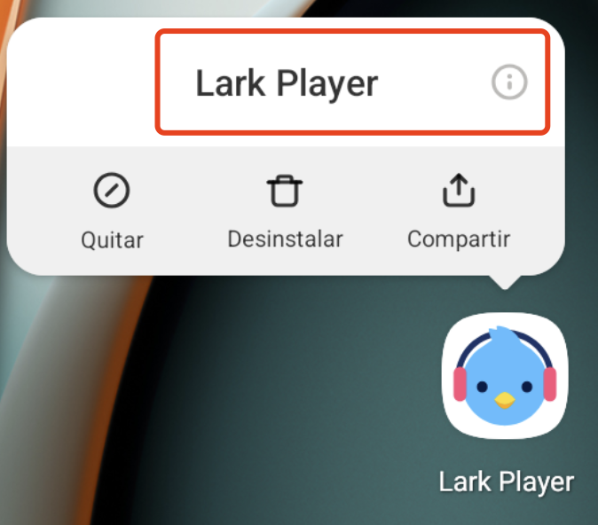 1. Mantén presionado el ícono de Lark Player y toca el ícono ℹ️ para abrir la información de la aplicación