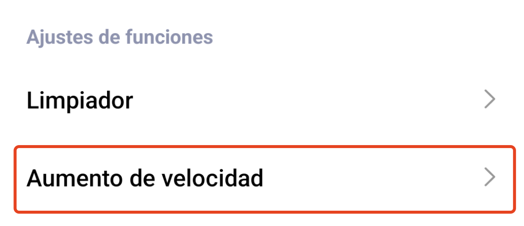 3. Selecciona la opción de Aumento de velocidad