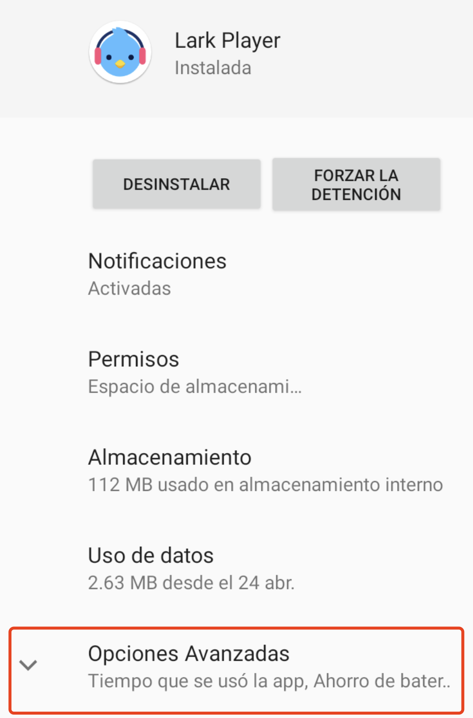 Esta configuración permite que Lark Player siga reproduciendo música sin verse afectado por las funciones de ahorro de batería.