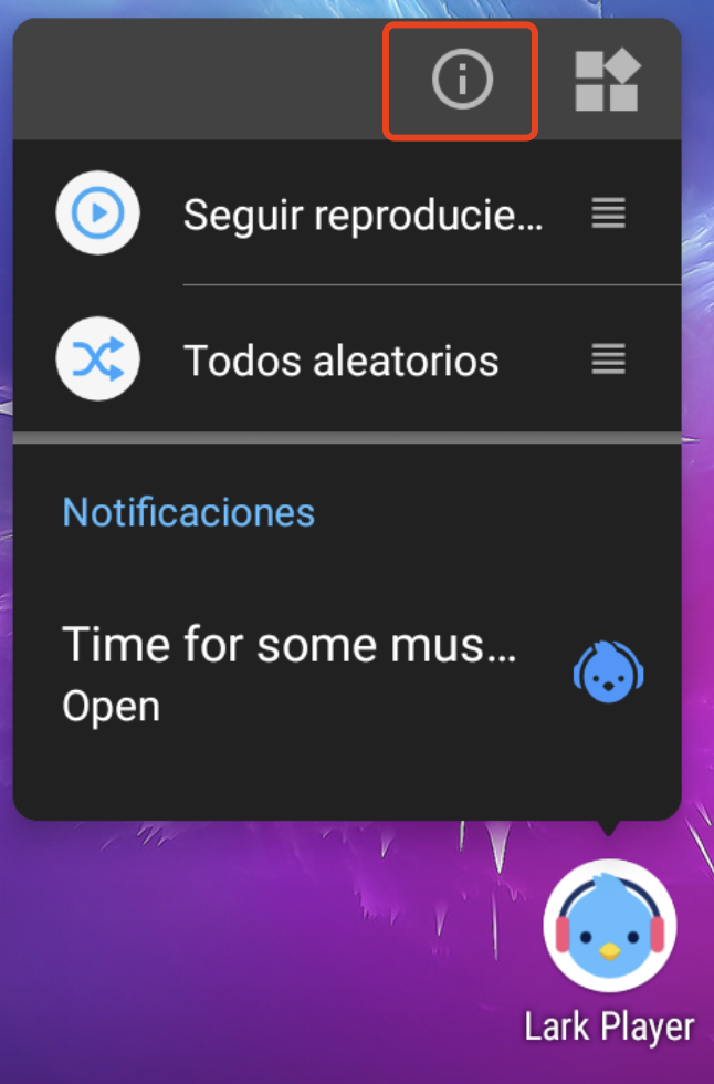 1. Mantén presionado el icono de "Lark Player" y toca el icono [i] para ir a "Información de la aplicación".