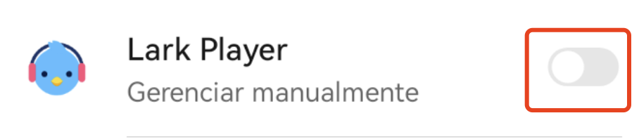 3. Encontre o Lark Player na lista e ative o interruptor para Gerenciar manualmente.